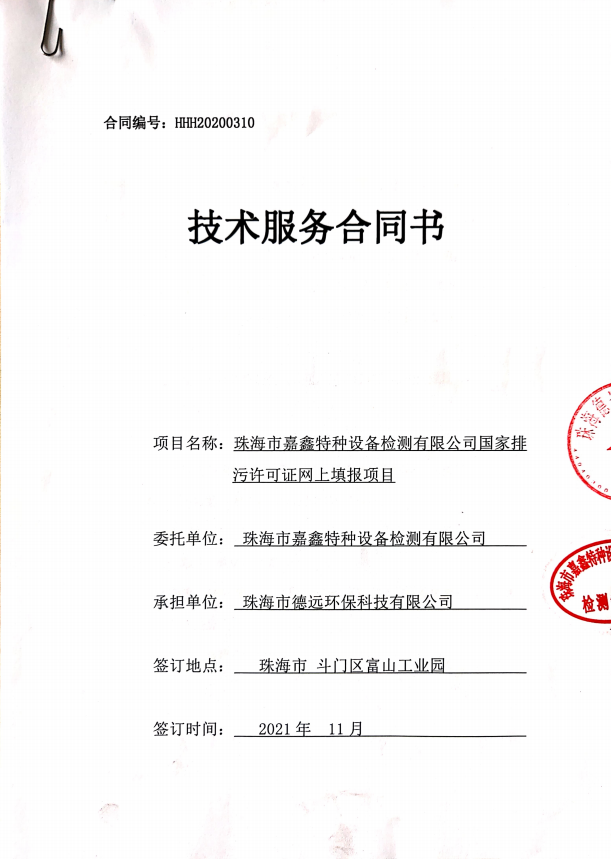 珠海市嘉鑫特種設(shè)備檢測有限公司排污許可證服務(wù)項目admin2022-08-19T19:25:40+08:00 項目描述 珠海市嘉鑫特種設(shè)備檢測有限公司排污許可證服務(wù)項目 證后管理-環(huán)保管家 珠海市嘉鑫特種設(shè)備檢測有限公司,成立于2013-08-01,注冊資本為200萬人民幣。 珠海市嘉鑫特種設(shè)備檢測有限公司-天眼查 珠海德遠環(huán)保-更多業(yè)績案例